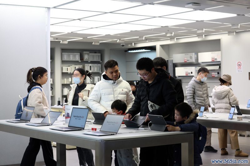 本年头,徐家汇商圈好意思罗城内一家电子家具线下直营店,顾主在选购手机和平板等家具。
